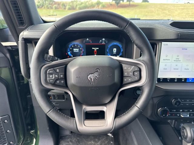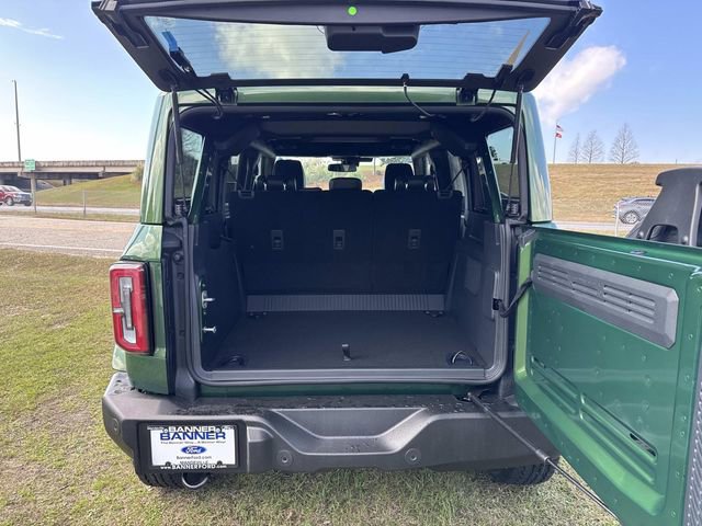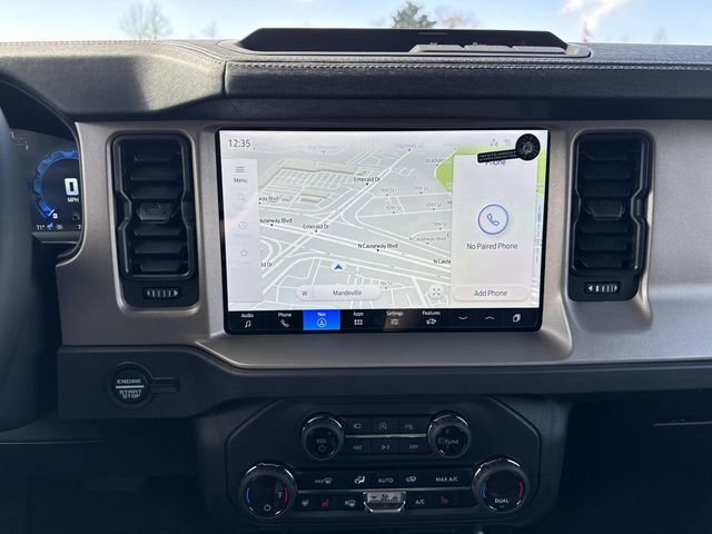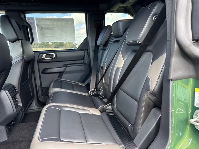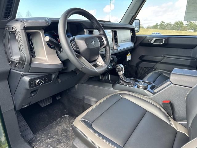 Inside, the Bronco Outer Banks offers a range of interior features, including a 1Touch Up/Down Driver/Passenger Window, 60/40 Split Fold Rear Seat, and Dual Zone Climate Control. The cabin is fitted with carpet flooring in both rows, a digital instrument cluster, and a locking glove box. Functional features include a 12-inch LCD Center Stack Touchscreen, Auto Start Stop Technology, and Ford Co-Pilot360™. Safety is prioritized with Advancetrac™ With RSC®, dual-stage front airbags, and a Safety Canopy® System. The vehicle is covered by a 3-year/36,000-mile bumper-to-bumper warranty, a 5-year/60,000-mile powertrain warranty, and a 5-year/60,000-mile roadside assistance plan.