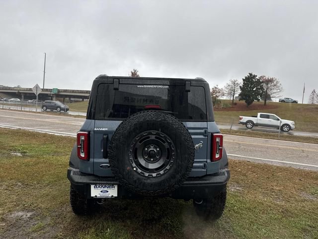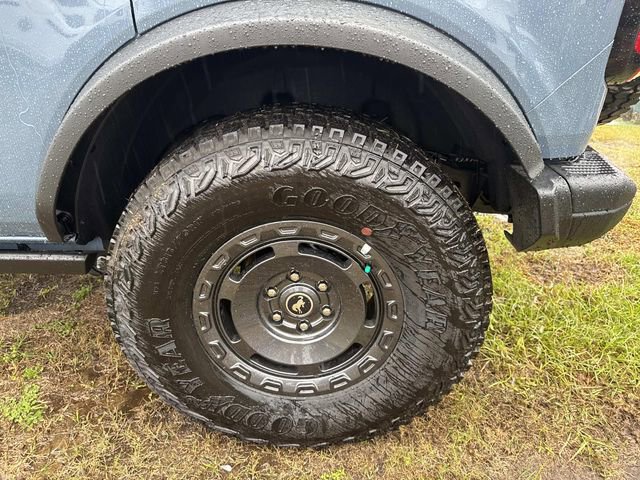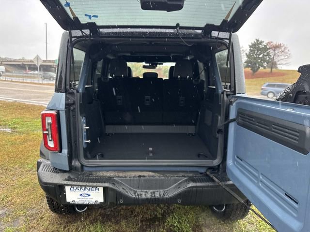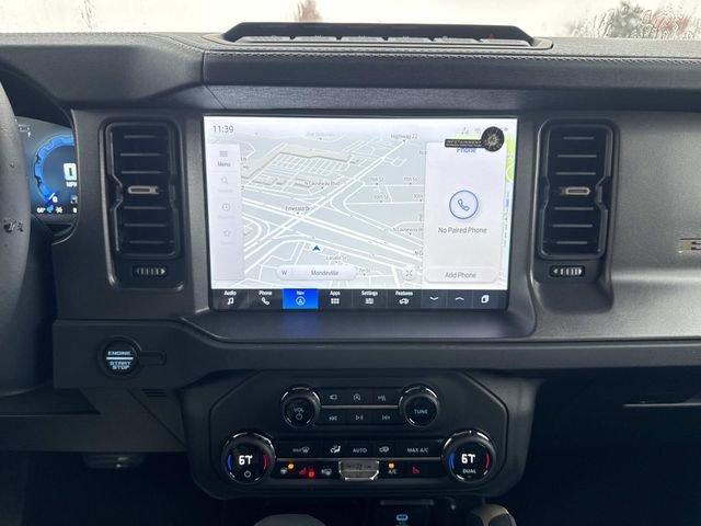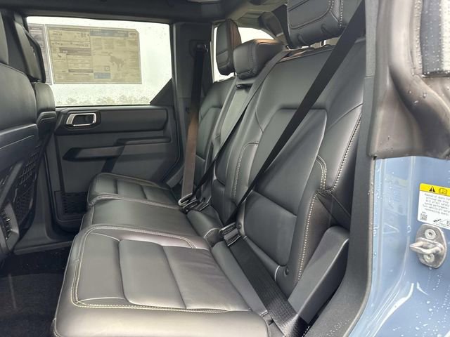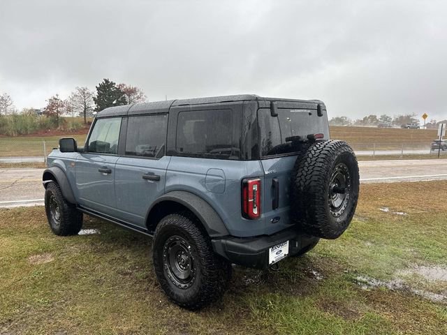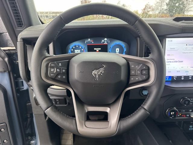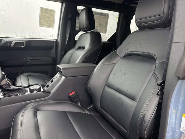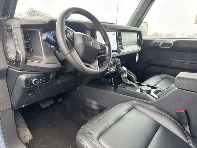 Inside, the Bronco Badlands offers a range of features such as a digital instrument cluster, leather-trimmed gear knob and steering wheel, and a Molle strap system. The interior also includes a 60/40 split-fold rear seat, auxiliary switches with pre-wiring, and smart charging USB ports. Functional features comprise a 12" LCD center stack touchscreen, advanced 4x4 system, front and rear locking differentials, and a push-button start. Safety is prioritized with Advancetrac™ with RSC®, dual-stage front airbags, and a Safety Canopy® System covering all rows. The vehicle is backed by a 3-year/36,000-mile bumper-to-bumper warranty, along with a 5-year/60,000-mile powertrain and roadside assistance coverage.