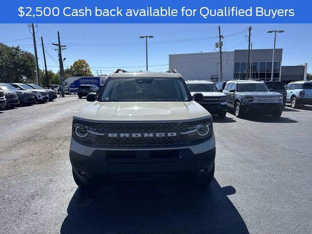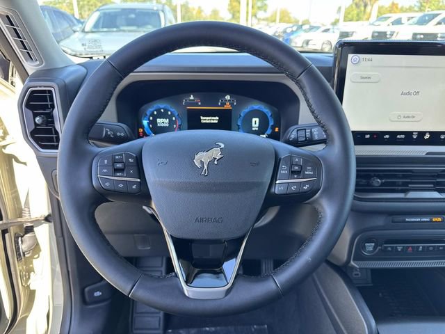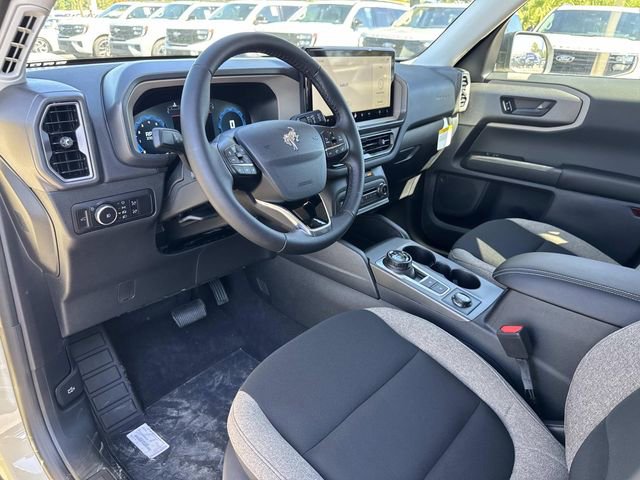The 2025 Ford Bronco Sport Big Bend, equipped with the Equipment Group 200A and Convenience Package, features a distinctive 17" Carbon Gray High Gloss Wheel and Desert Sand exterior. Under the hood, it houses an Intercooled Turbo Regular Unleaded I-3 1.5 L/91 engine, offering a balanced blend of performance and efficiency. The vehicle's exterior is enhanced with Active Grille Shutters, LED headlamps and taillamps, and black roof-rack side rails. It also includes practical features like heated power glass mirrors and a rear liftgate with liftglass.