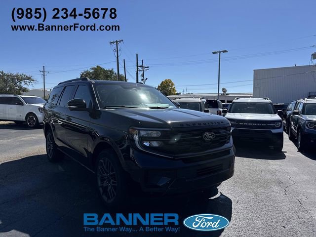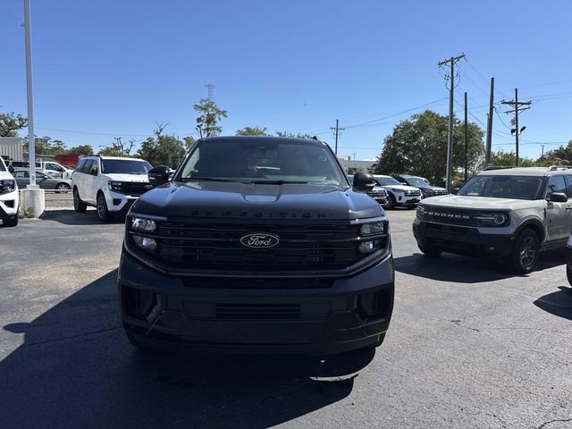 The 2025 Ford Expedition Platinum, equipped with the Stealth Appearance Package and 22" Magnetite Painted Wheels, offers a robust Twin Turbo Premium Unleaded V-6 3.5 L/213 engine. This model includes the Connectivity Package, Driver's Package, and Ford Co-Pilot360 Active 2.0, enhancing both performance and safety. Key features such as a 3rd Row Seat, Sunroof/Moonroof, and a 360 Degree Camera provide versatility and convenience. The exterior is designed for functionality with 360 Degree Zone Lighting, Heavy Duty Trailer Tow, and a Panoramic Vista Roof®.