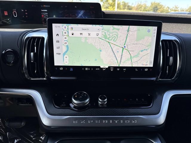 Inside, the Expedition Platinum features a 3rd Row 40/20/40 Flex Seat with Powerfold and ambient lighting, creating a comfortable and adaptable cabin environment. Heated and ventilated front seats, along with a memory driver seat and power-adjustable pedals, ensure a personalized driving experience. Functional highlights include a 24" Pano Display with a 13.2" Center Touch Screen and an Intelligent 4WD System. Safety is prioritized with features like Advancetrac™ with RSC®, multiple airbags, and a Personal Safety System™. The vehicle is backed by a 3-year/36,000-mile bumper-to-bumper warranty, a 5-year/60,000-mile powertrain warranty, and 5-year/60,000-mile roadside assistance.