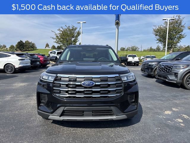 The 2025 Ford Explorer Active is equipped with notable optional features such as a Mini Spare and Jack Kit, 18" Silver Painted Aluminum Wheels, P255/65R18 All Season Black Side Wall Tires, and compliance with 50 State Emissions standards. This model is powered by an Intercooled Turbo Premium Unleaded I-4 2.3 L/140 engine, providing a balance of performance and efficiency. Key features include a 3rd Row Seat and compatibility with Apple CarPlay and Android Auto, enhancing both passenger capacity and connectivity.