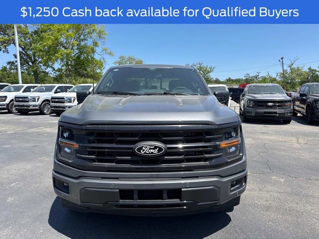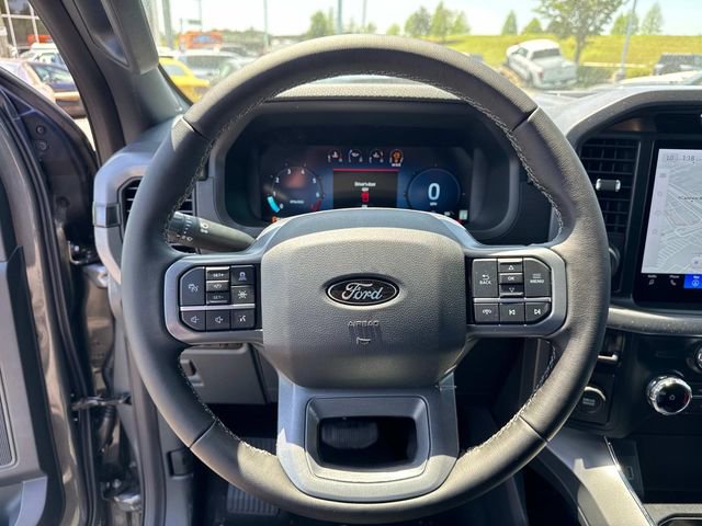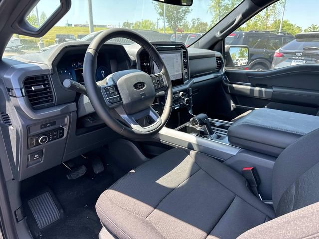 Inside, the F-150 XLT offers a 12" productivity screen and power door locks, complemented by dual sunvisors and illuminated entry for convenience. Functional features such as BLIS with cross-traffic alert, a Class IV trailer hitch with a smart trailer tow connector, and FordPass™ Connect 5G Wi-Fi hotspot telematics modem enhance connectivity and safety. The vehicle is equipped with advanced safety features including Advancetrac™ with RSC®, airbags with front seat-mounted side impact, and a tire pressure monitoring system. Warranty coverage includes a 3-year/36,000-mile bumper-to-bumper warranty and a 5-year/60,000-mile powertrain warranty, ensuring long-term reliability and peace of mind.