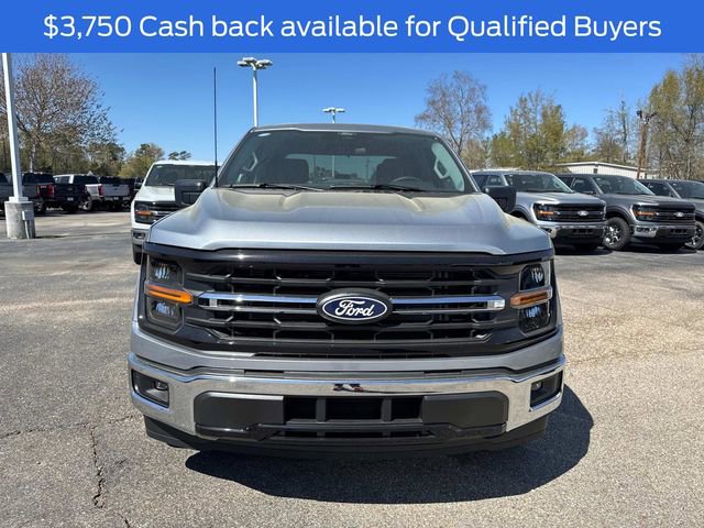 The 2025 Ford F-150 XLT is equipped with notable optional features such as the XLT Series package, an extended range 36-gallon fuel tank, and 18" chrome-like PVD wheels. This model is powered by a Regular Unleaded 2.7 L EcoBoost engine and includes a 6" bright anodized step bar and 265/60R18 black sidewall all-season tires. The 8-way power driver's seat enhances comfort, while the 6426# GVWR package and 50-state emissions compliance ensure versatility and adherence to regulatory standards.