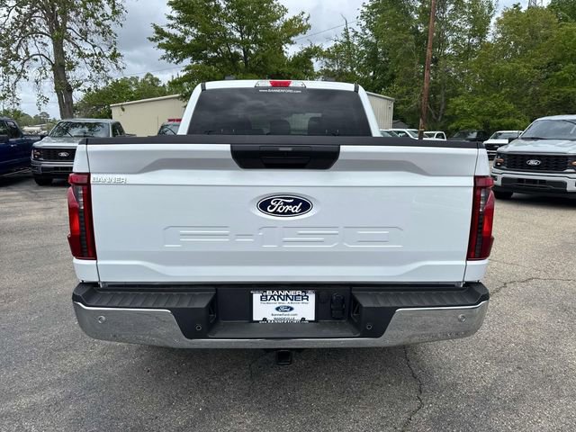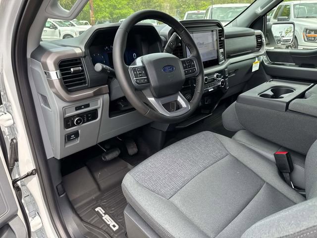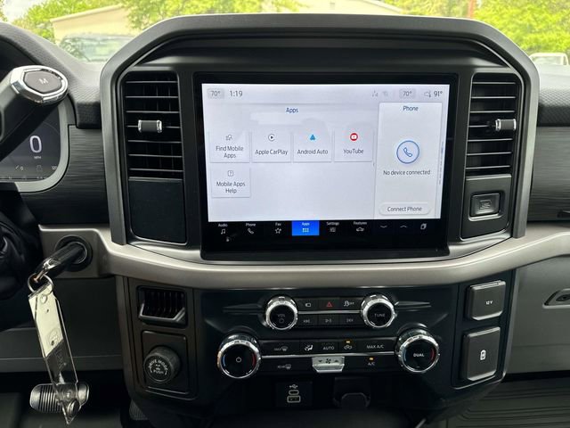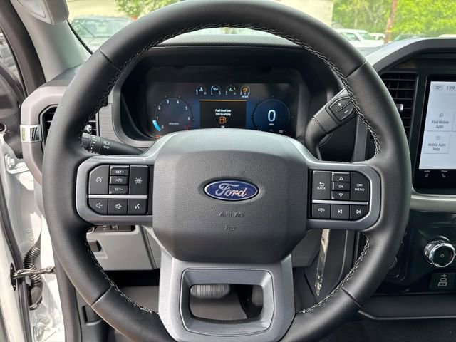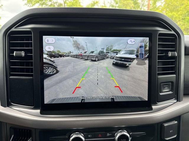 The vehicle's exterior is designed for durability, with a fully boxed steel frame and LED reflector headlamps. Inside, the F-150 offers a 12" productivity screen and power door locks, while safety is prioritized with features like AdvanceTrac™ with RSC®, front seat-mounted side impact airbags, and a tire pressure monitoring system. The warranty coverage includes a 3-year/36,000-mile bumper-to-bumper warranty and a 5-year/60,000-mile powertrain warranty, ensuring long-term reliability. With additional safety features such as BLIS with cross-traffic alert and pre-collision assist with automatic emergency braking, the F-150 XLT is well-equipped to handle both everyday and heavy-duty tasks.