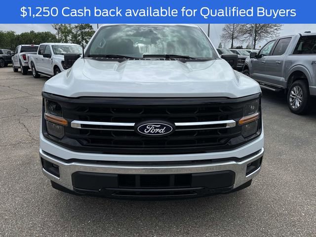 The 2025 Ford F-150 XLT is equipped with a Regular Unleaded 2.7 L EcoBoost engine and features an 8-way power driver's seat, 18" chrome-like PVD wheels, and a 3.73 electronic locking rear axle, enhancing both comfort and performance. The XLT Series package includes 265/60R18 black sidewall all-season tires and a 6" bright anodized step bar, providing versatility for various driving conditions. Additional functional features such as a Class IV trailer hitch with a smart trailer tow connector and trailer sway control ensure the F-150 is ready for demanding towing tasks.