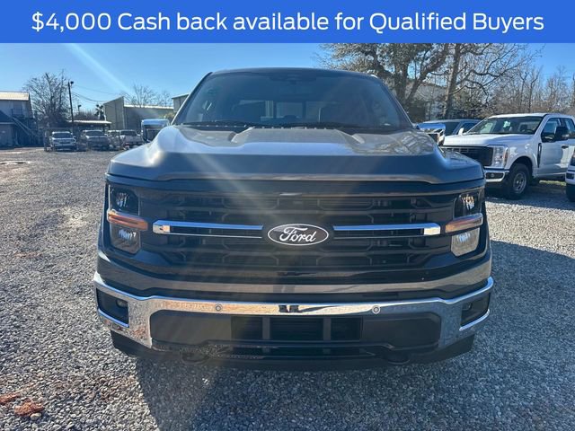 The 2025 Ford F-150 XLT, equipped with a PowerBoost Full-Hybrid V6 3.5 L engine, features notable optional equipment such as the 275/60R20 Black Side Wall All-Terrain tires and a B&O Sound System with 8 speakers. This model is further enhanced by skid plates and an integrated trailer brake control, ensuring durability and control in challenging conditions. The Mobile Office Package and 7400# GVWR Package add functionality and capability, while the 3.73 Max Tow E-Lock optimizes towing performance.