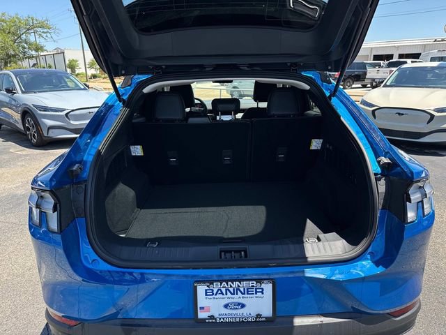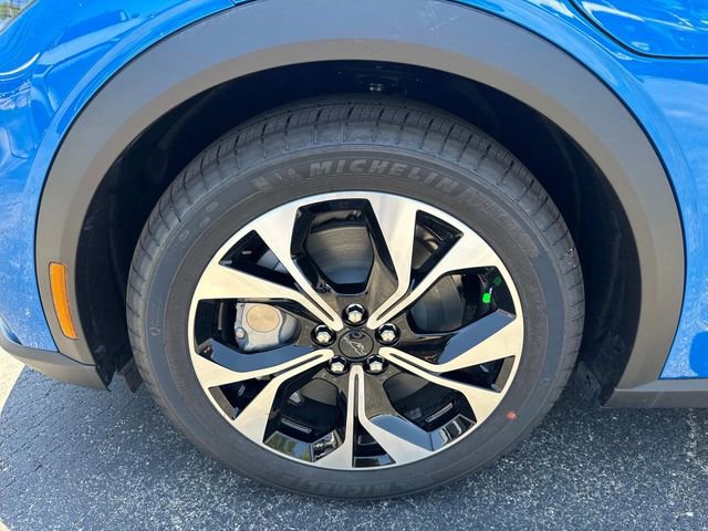 The 2025 Ford Mustang Mach-E SELECT RWD features 19" aluminum wheels with painted pockets and includes a Comfort Package Lite, enhancing the overall driving experience. Notable optional equipment includes a memory driver seat and side mirrors, a 90-day trial of Bluecruise equipment, and a cargo floor liner. The vehicle is equipped with the Equipment Group 100A, providing a comprehensive set of features designed to meet various driving needs.