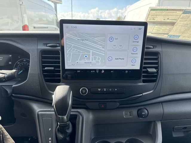 Key features of this Transit Cargo Van include Adaptive Cruise Control, Auto High-Beam Headlamps, and a comprehensive safety suite with Advancetrac™ With RSC®, Pre-Collision Assist with AEB, and a Tire Pressure Monitoring System. The exterior is equipped with practical elements such as Rain-Sensing Wipers, a Full Size Spare Tire/Wheel, and Black Body Side Moldings. Inside, it offers LED Interior Lighting, a Locking Glove Box, and a Tilt/Telescopic Steering Wheel. The vehicle is backed by a 3-year/36,000-mile bumper-to-bumper warranty and a 5-year/60,000-mile powertrain warranty, along with roadside assistance for the same duration, ensuring peace of mind for owners.