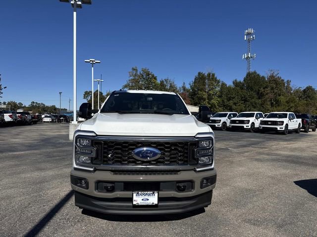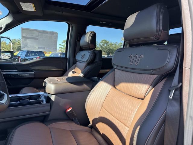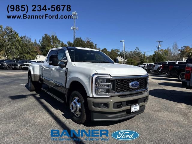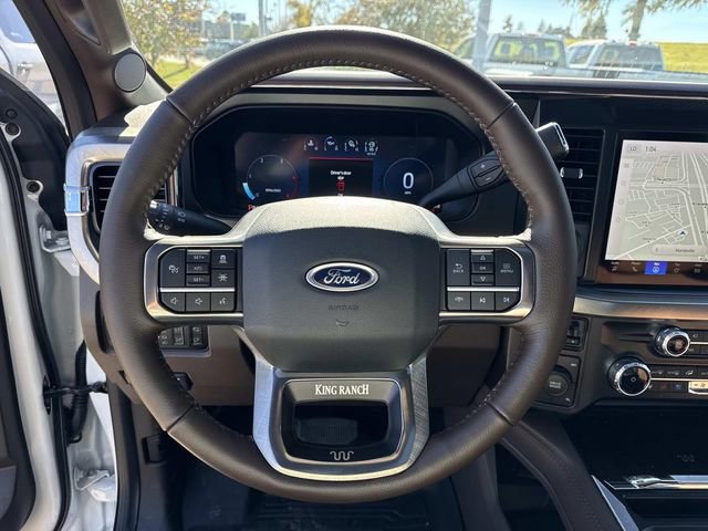 The 2026 Ford Super Duty F-350 DRW King Ranch comes equipped with significant optional packages, including the 14000# GVWR Package, 5th Wheel Hitch Prep Package, and the 3.55 Ratio Limited Slip Axle, enhancing its towing and payload capabilities. Under the hood, it is powered by a robust Intercooled Turbo Diesel V-8 6.7 L/406 engine, complemented by a 10-Speed Auto Torqshift transmission and the 6.7 Hi Output Power Stroke for exceptional performance. The vehicle also features an Engine Block Heater for improved cold-weather starts and complies with 50 State Emissions standards.