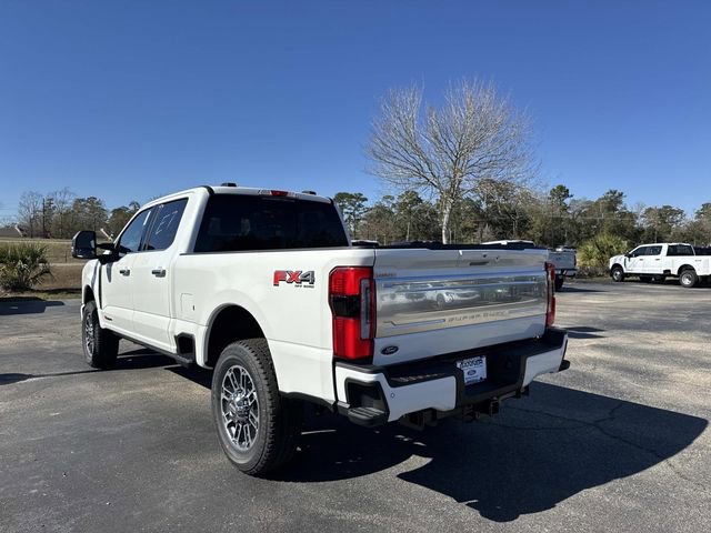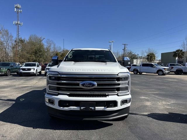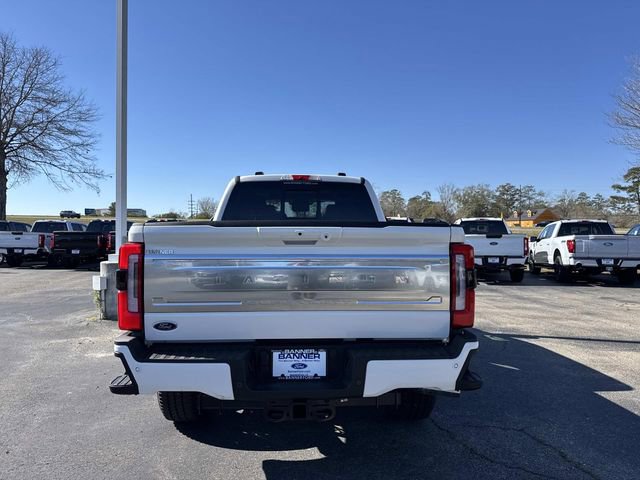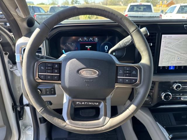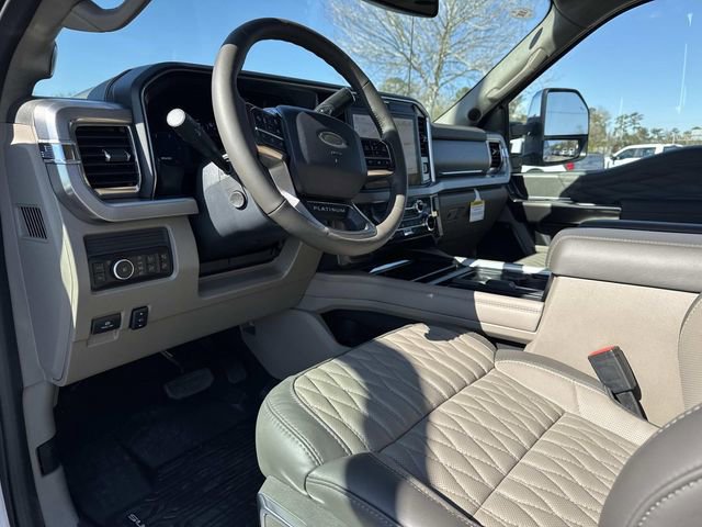 The 2026 Ford Super Duty F-350 SRW Platinum is equipped with a robust Intercooled Turbo Diesel V-8 6.7 L/406 engine and a 10-Speed Auto Torqshift transmission, ensuring exceptional power and performance. Notable optional features include a Moonroof Power-Twin Panel, Bright Aluminum 20" Wheels, and the FX4 Off-Road Package, enhancing both comfort and off-road capability. The truck's exterior is designed for functionality, featuring LED fog lamps, a power sliding rear window with defrost and privacy tint, power tailgate, and Powerscope TT power-fold mirrors that are both heated and powered. Additionally, it includes practical elements such as a tailgate step, trailer brake controller, and rain-sensing wipers.