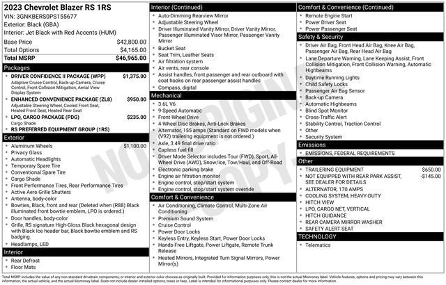 Black 2023 Chevrolet Blazer RS 4D Sport Utility FWD 9-Speed Automatic with Overdrive 3.6L V6 SIDI Priced below KBB Fair Purchase Price!
